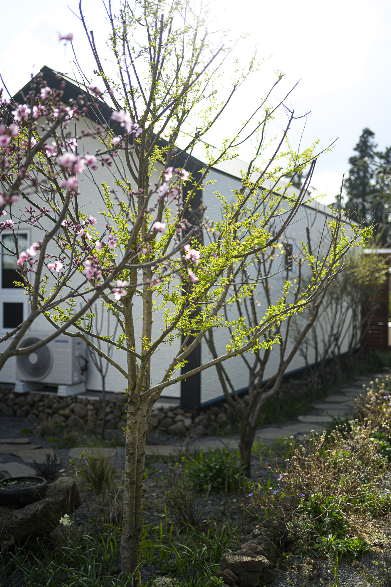 집을 짓고 얼마 되지 않았을 때 뒤편에 깔아둔 보도블럭 사이에서 나무줄기 하나가 솟았다.